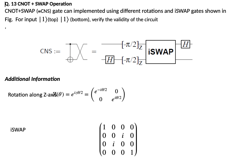 Iswap Gate - Guillaume Verdon On Twitter New Gates From Rigetti The Xy Gate Which Includes Iswaps Reduces 2q Gate Cost By 3x Compared To Czs When Moving Qubits Around On The Chip Q2b19 Https T Co Hptglhieo2 - Moreover, we analyze a recently proposed scheme of wang et al.. For input | 1) (top) 10) (bottom), using matrices (given in additional information) for each operation, show that the circuit on rhs is equivalent to cnot gate. (you get + i if you evolve with exp Since we have z rotations and arbitrary xy rotations, we can rely on cirq decomposition for one qubit gates and need to only specify special decompositions for two qubit gates. Iswap;iswap1=4;:::g, and can be applied between any fluxonium and transmon pair. We only use three copies of the same controlled qudit.