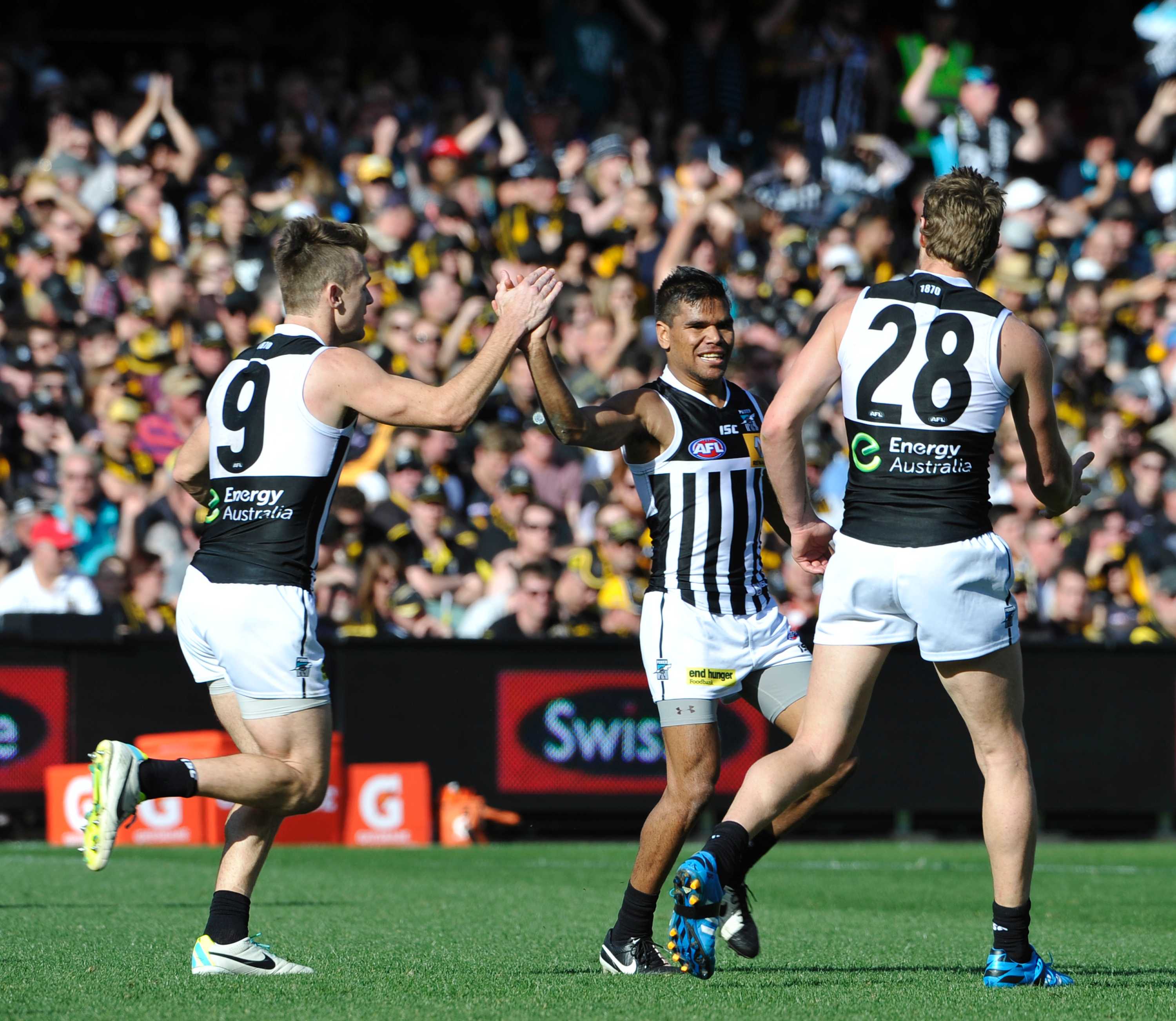Port adelaide made a bold jumper switch to sing the song in after its showdown win.
